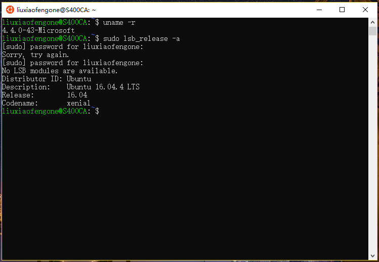 这时系统会显示:4.4.0-43-Microsoft,这表示Linux 内核版本为:4.4.0-43。