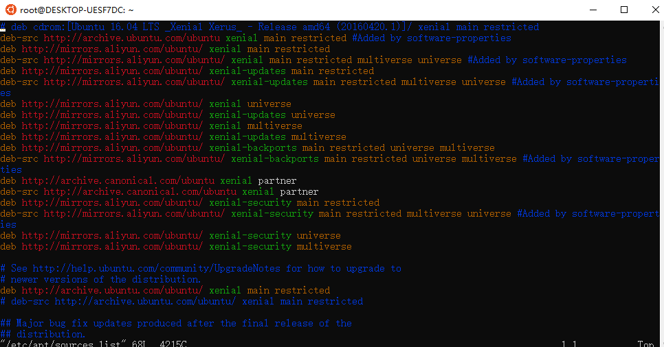 deb http://mirrors.aliyun.com/ubuntu/ xenial-updates main restricted