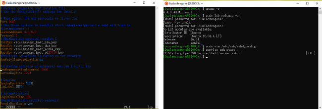 之后使用 vim 编辑器编辑 「sshd_config」文件: