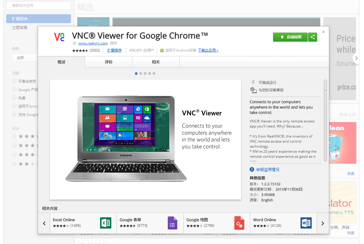 之后我们需要在 PC 上安装 VNC 的客户端,我这里选择的是 Realvnc,然后直接选择 Chrome 应用版本,在 Chrome 商店中添加为 Chrome 独立应用。