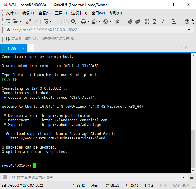 然后在左侧的会话管理器找到刚才设置的新会话,双击后如果显示如下图所示的界面就算是成功了!