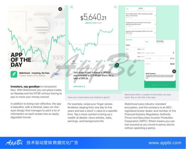 研究发现能进入App Store总榜的App寥寥无几,但是有一部分App还是有着不错的表现,甚至有一款App—— Robinhood在美国区Today上还被进行了推荐,也反映了这类App的市场需求。
