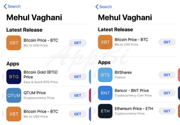 我们可以看到,美国区Top 1开发者开发的区块链App近30款,远远领先于其他开发者,而且该开发者可能是个人开发者,并未查到相关公司信息。我们注意到他在App Store发布了很多区块链相关的App:
