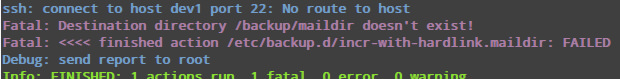 上面的图片告诉我们,用于完成备份操作的连接没有建立,因为它所需要链接的远程主机似乎宕机了。另外,在helper文件中指定的目标目录不存在。当纠正这些问题后,重新开始备份操作。