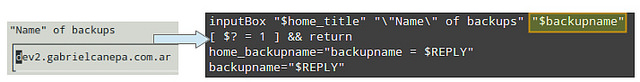inputBox "$home_title" "\"Name\" of backups" "$backupname"