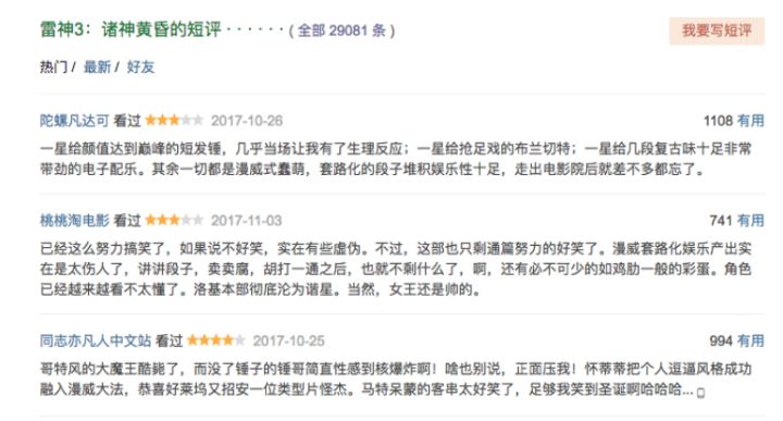 光有数据还不足以说明什么,深入分析一波:细心的小伙伴一定发现了,雷神明明是11月3号才上映,为啥10月份就有影评了?小慕猜测,这肯定是漫威铁杆粉跑国外看了,一查发现,果然人家洛杉矶10月10号就上映了: