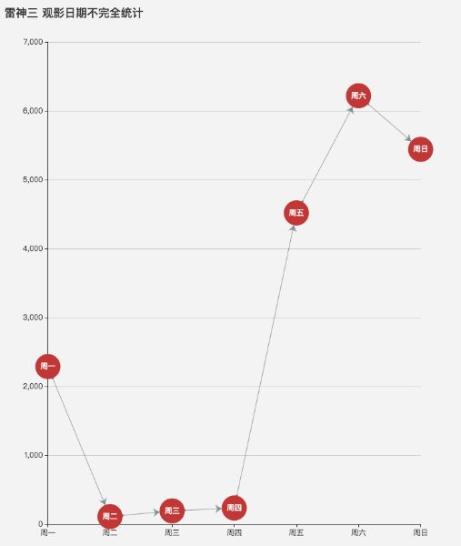 整体数据显示:果然还是周末去看电影的人更多……周一数据高于二、三、四的原因,不知道是不是没有周末的朋友调休去看的?
