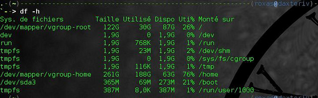 作为一个 LVM 使用者, 我非常喜欢随时查看我的硬盘存储器的使用情况. 我也从来没法真正理解为什么在 Windows 上我们非得打开资源管理器来查看电脑的基本信息。在 Linux 上 我们可以使用如下命令