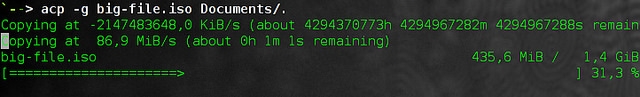 一个 Linux 中最基本的命令就是复制命令 cp。 它几乎和 cd 命令地位相同。 然而 它的输出非常少。 你可以使用 verbose 模式来实时查看正在被复制的文件 但如果一个文件非常大的话 你看着屏幕等待却完全不知道后台在干什么。 一个简单的解决方法是加上一个进度条 这正是 advcp (advanced cp 的缩写) 所做的 advcp 是 GNU coreutils 的一个 补丁版本 它提供了 acp 和 amv 命令 即"高级"的 cp 和 mv 命令. 使用语法如下