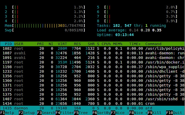 如果你经常使用 top 命令 很有可能你会喜欢 htop 命令。 top 和 htop 命令都能对正在运行的进程提供了实时查看功能 但 htop 还拥有一系列 top 命令所没有的人性化功能。 比如 在 htop 中 你可以水平或垂直滚动进程列表来查看每个进程的完整命令名 还可以使用鼠标点击和方向键来进行一些基本的进程操作(比如 kill、 (re)nice 等)而不用输入进程标识符。