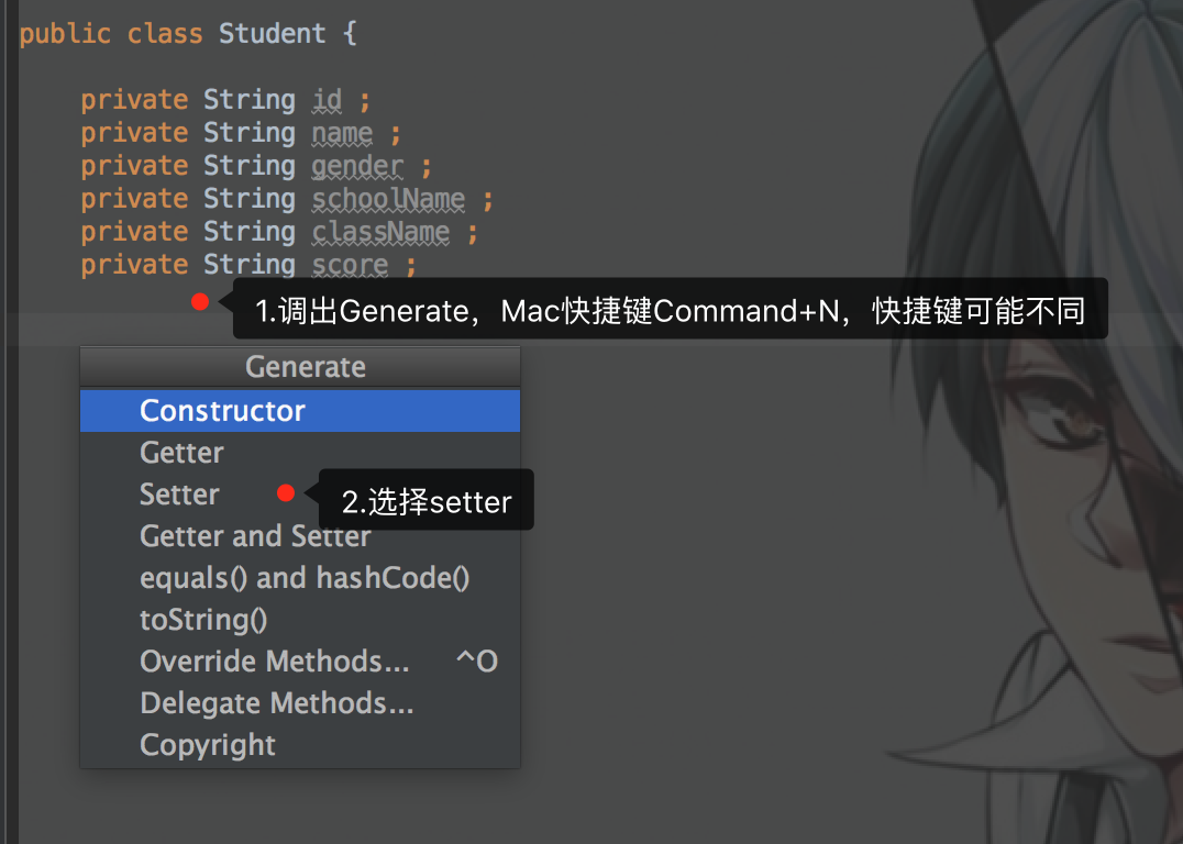 生成的setter方法正是我们需要的。前面已经写了,该神技适用于IntelliJ IDEA,Android Studio。其实就是IntelliJ IDEA内核嘛。