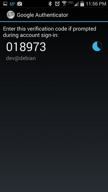 在绑定的安卓设备上运行 Google 身份验证器,获得一个一次性验证码,该验证码 30 秒内有效,一旦过期,将重新生成一个新的验证码。