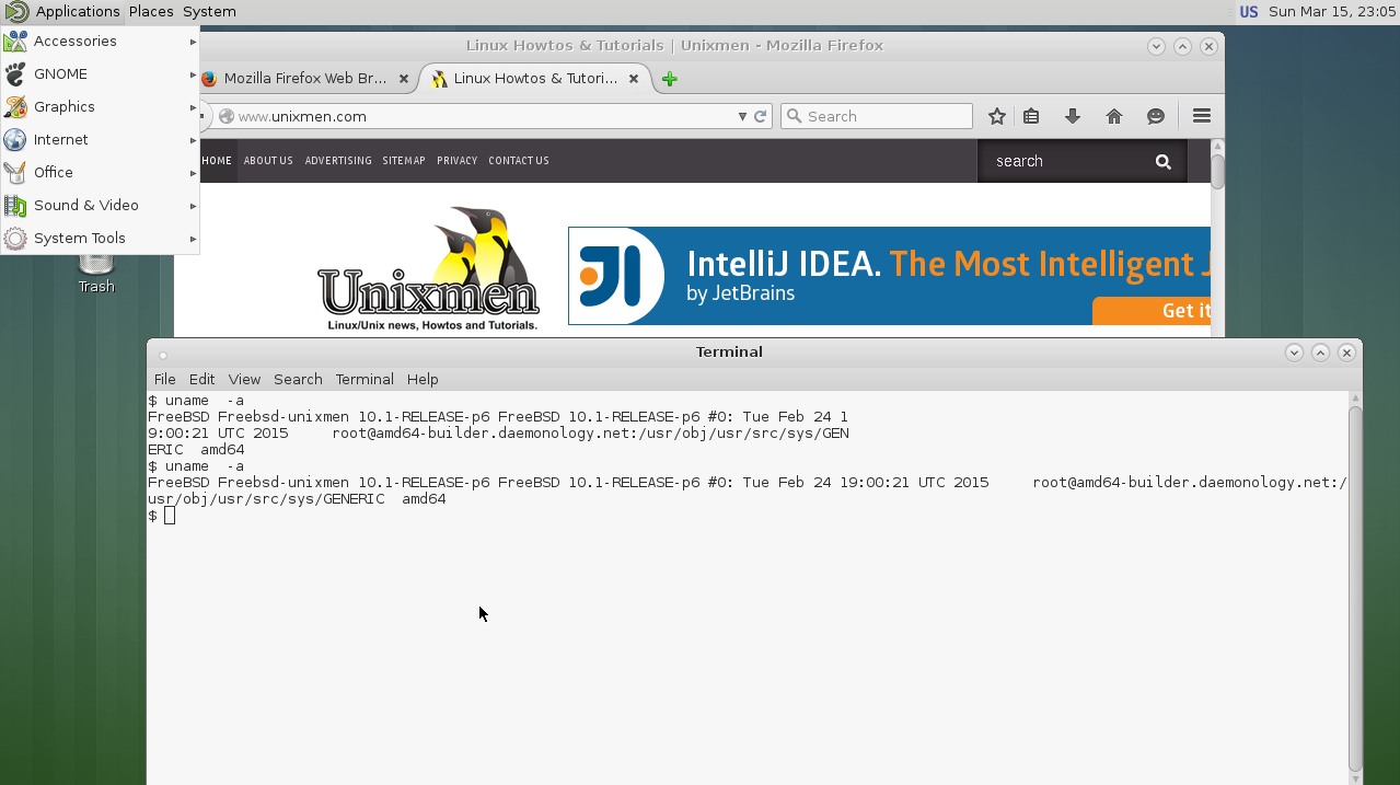 root@Freebsd-unixmen:~ # uname -a FreeBSD Freebsd-unixmen 10.1-RELEASE FreeBSD 10.1-RELEASE #0 r274401: Tue Nov 11 21:02:49 UTC 2014 [email protected]:/usr/obj/usr/src/sys/GENERIC amd64 root@Freebsd-unixmen:~