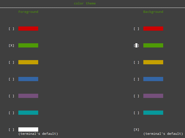 使用最后一幅图的按键绑定来选择前景色和背景色配置,以更好地适应你的需求: