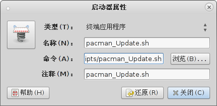 按照旧思路,在面板中添加启动器指向 .sh 脚本,以这个为例: