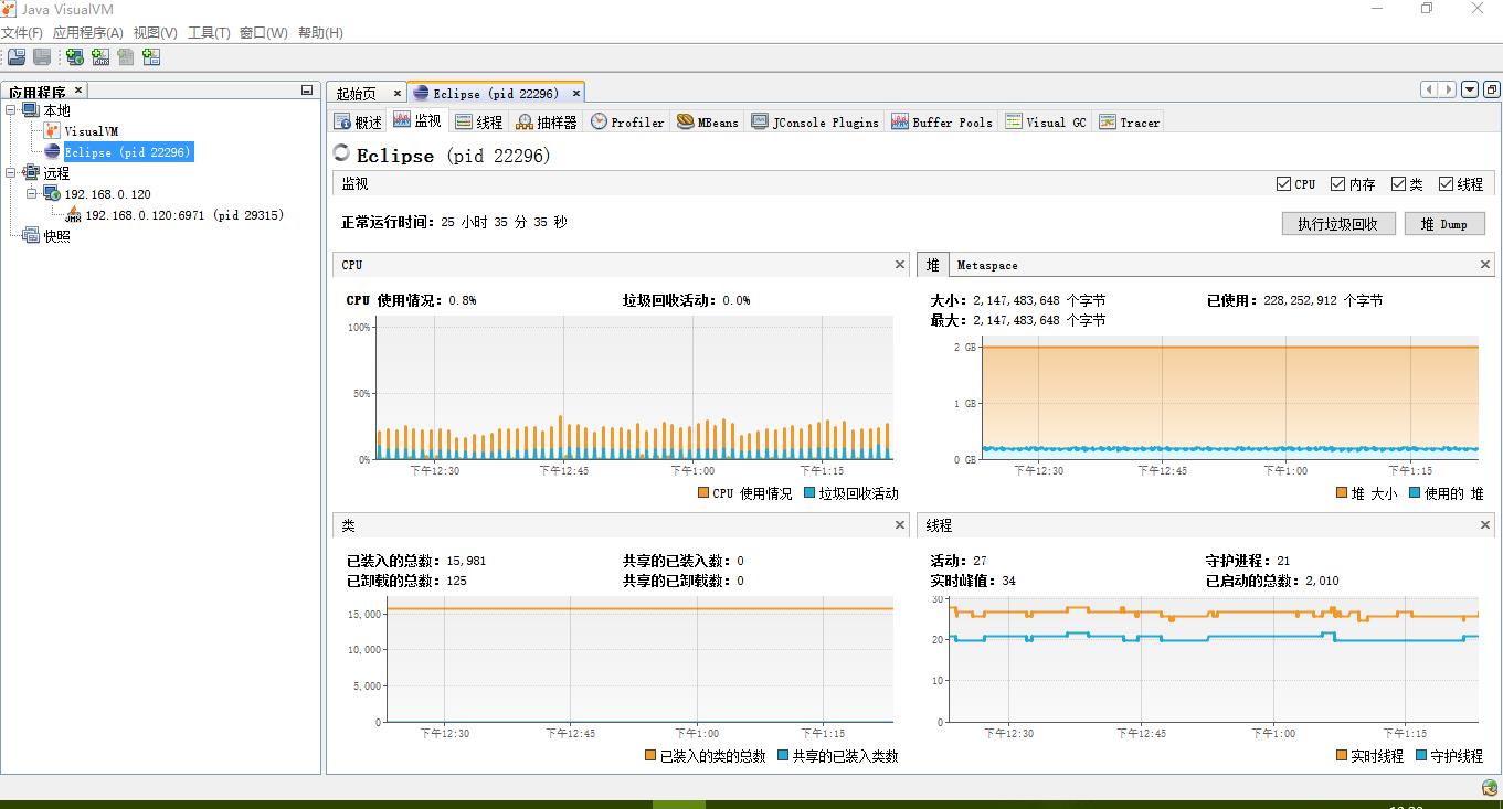 监控的主页其实也就是,cpu、内存、类、线程的图表