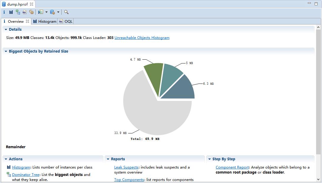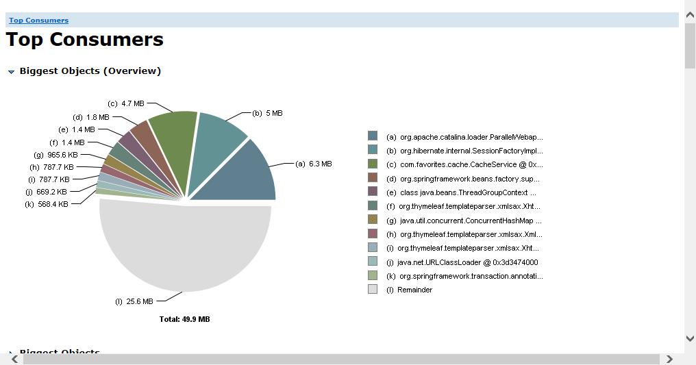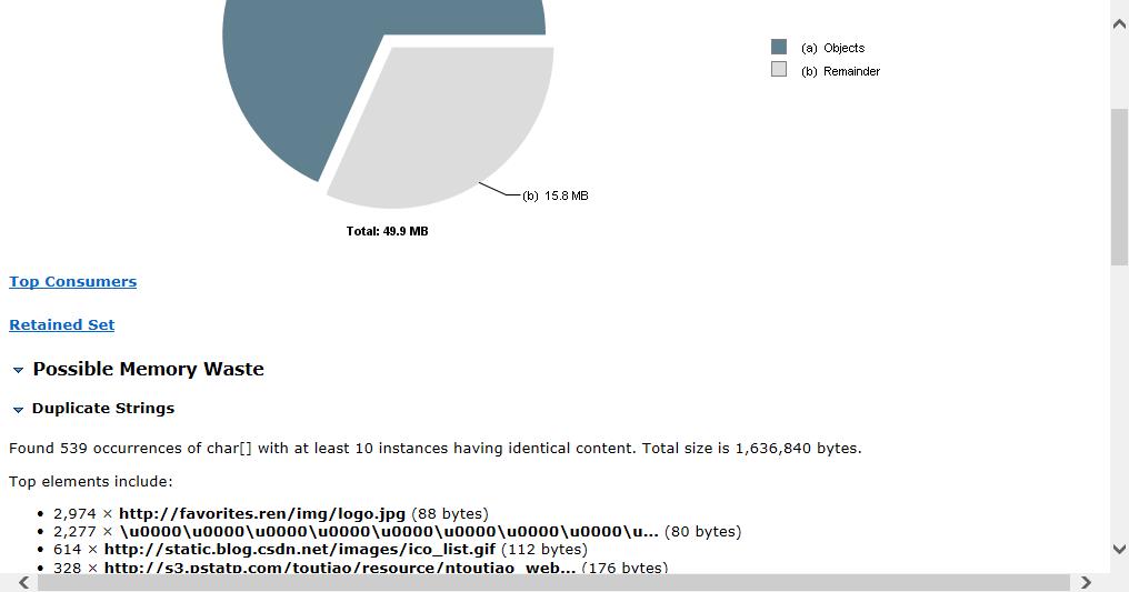 生产这会报表的同时也会在dump文件的同级目录下生成三份(dump_Top_Consumers.zip、dump_Leak_Suspects.zip、dump_Top_Components.zip)分析结果的html文件,方便发送给相关同事来查看。