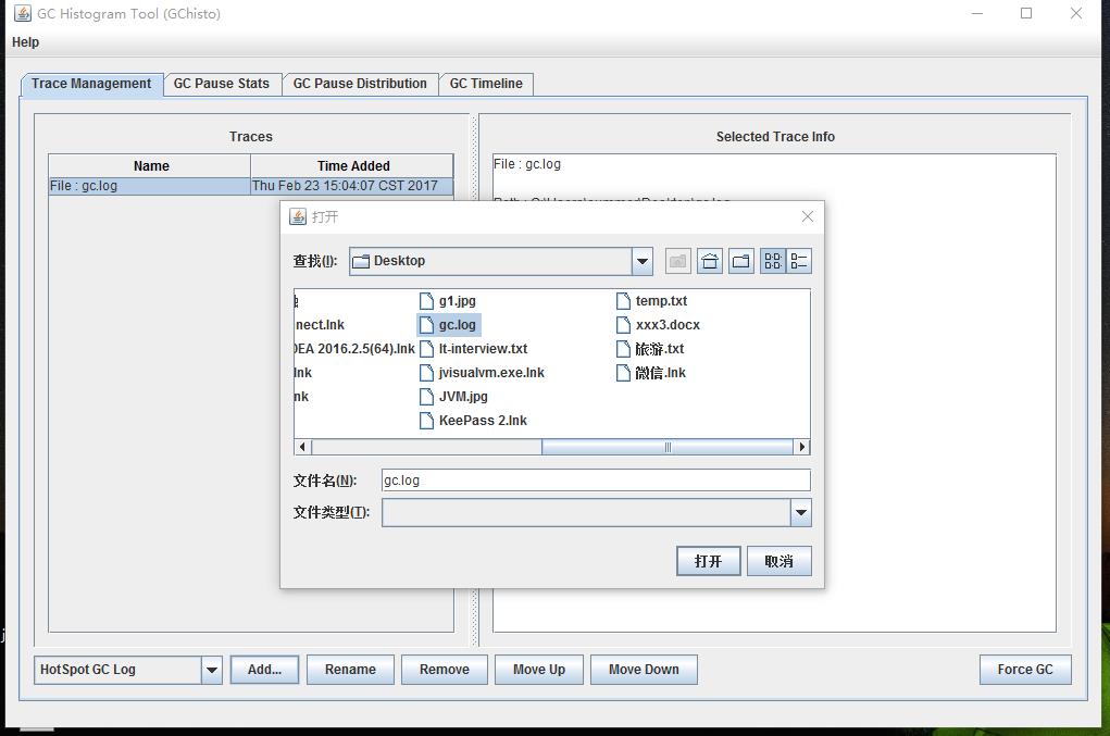 配置好本地的jdk环境之后,双击GChisto.jar,在弹出的输入框中点击 add 选择gc.log日志
