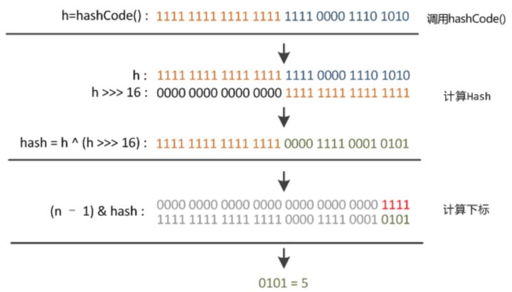 在JDK1.8的实现中,优化了高位运算的算法,通过hashCode()的高16位异或低16位实现的:(h = k.hashCode()) ^ (h >>> 16),主要是从速度、功效、质量来考虑的,这么做可以在数组table的length比较小的时候,也能保证考虑到高低Bit都参与到Hash的计算中,同时不会有太大的开销。