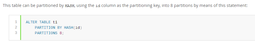 4. KEY分区和HASH分区的算法不一样,PARTITION BY HASH (expr),MOD取值的对象是expr返回的值,而PARTITION BY KEY (column_list),基于的是列的MD5值。