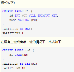 3. KEY分区对象必须为列,而不能是基于列的表达式。