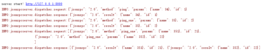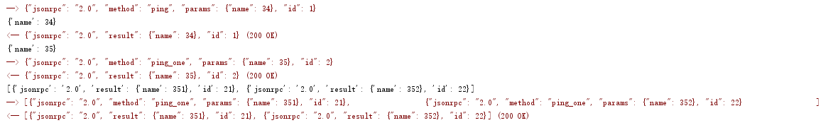 time.sleep(1)# 批量请求两个方法res = req.send('''[{"jsonrpc": "2.0", "method": "ping_one", "params": {"name": 351}, "id": 21},