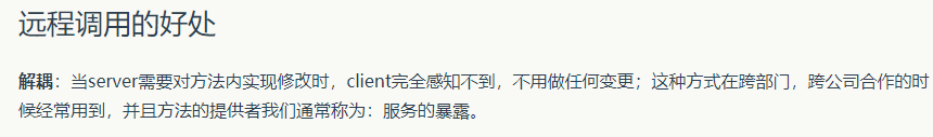 调用另一个服务的某个方法,相对于接口调用,在代码整洁及解耦方面有优势。并且可以使用批量请求(在所以请求完成后,在一并返回)
