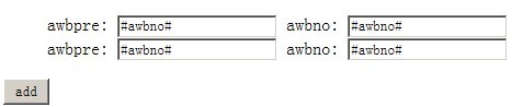 1 2 3 4 5 6 7 8 9 | <script type="text/javascript"> function add(){ var liTemplate = $("#template"); $("#box").append("<li>" + liTemplate.html() + "</li>") var new_li = $("#box li:last"); new_li.find("input[name='awbpre']").val("999"); new_li.find("input[name='awbno']").val("12312311"); }</script> |