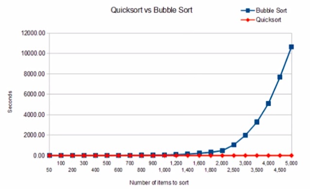 另外一个我们需要注意的运算性能问题是基础算法的合理选择,例如冒泡排序与快速排序的性能差异: