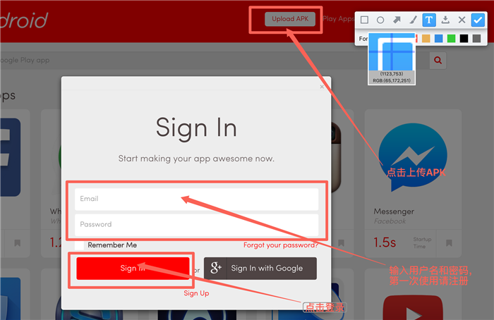 如果想使用分析功能分析自己的产品,请登录并上传自己产品的apk包,所有功能目前均免费使用,如果是想分析Google Play上已经发布的产品,可以直接点击"Play Apps"查看,还可以使用搜索功能根据应用名和包名查看结果。再次强调下,请不要上传任何未发布的产品。