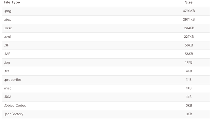 5. 文件类型排行榜里,png, dex 和arsc是前三甲;