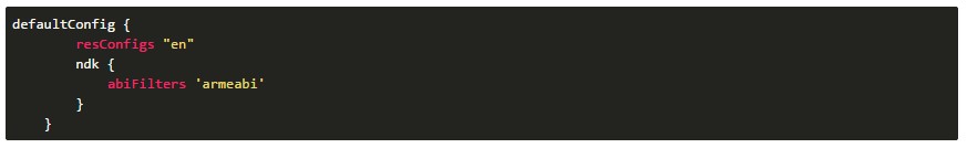 记得包在android{}中间哦。那么,有人要问了,abi里肿么没有x86?据说intel提供了一个解决方案叫houdini,是一个运行在x86设备上的中间件,可以将arm转码为x86的指令,不过效率很低,有些运算型的,比如计算MD5和SHA1,甚至不如java,笔者曾经做过测试对比,又是另外一个话题,此处不赘述,感兴趣的读者可以移步。