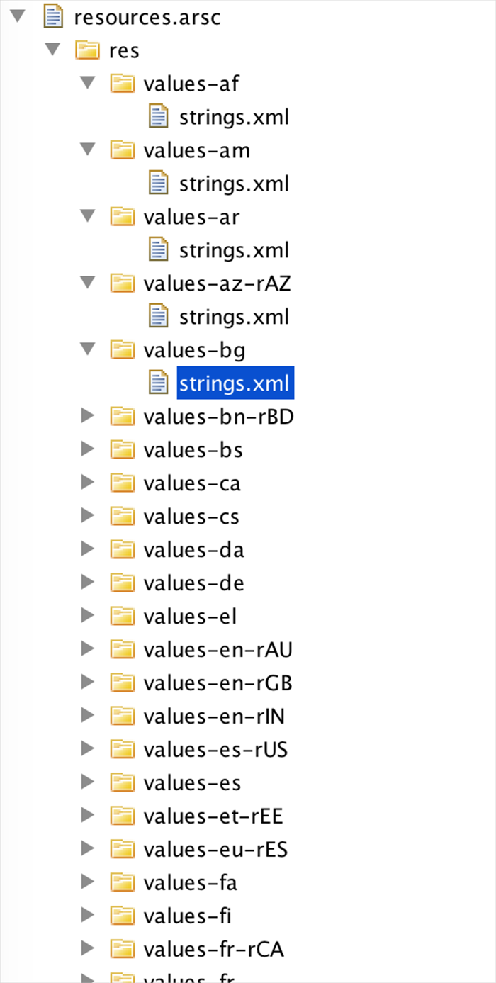 这又将成为一个优化点,去除那些没用的翻译资源,引入一些第三方的SDK,往往这些SDK带了很多翻译资源在里面,比如android support库,去掉后我们来看看效果。