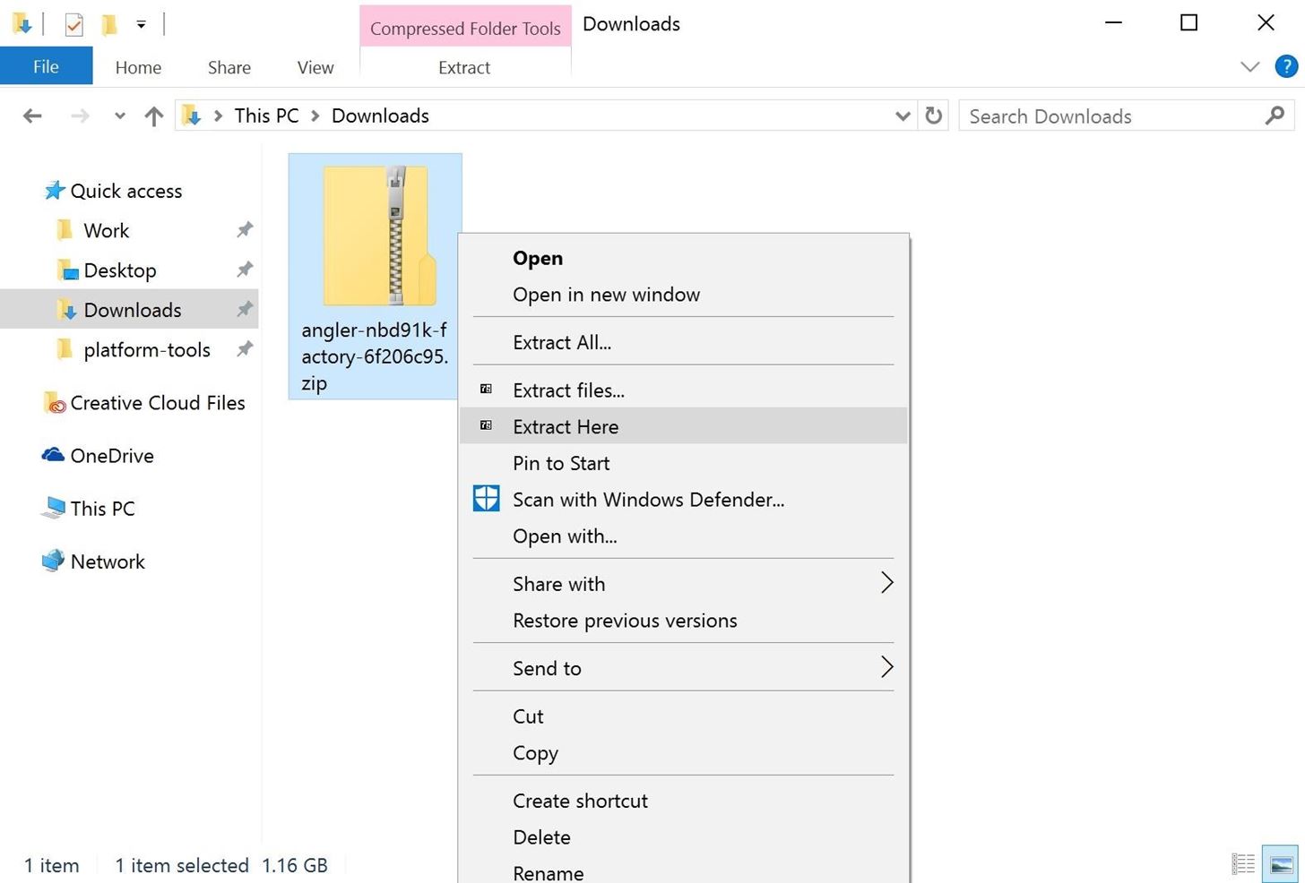 首先解压出厂镜像包中的所有压缩文件。通常压缩包里会包含三或四个层叠的文件夹,确认你已经解压了所有的压缩文件。之后把这些文件移动到 platform-tools —— 或者说,别把他们放到任何子文件夹下。