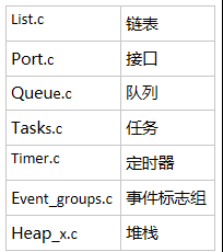 Task.c和Task.h文件内是FreeRTOS的核心内容,所有任务和调度器相关的API函数都在这个文件中,它包括下图这些内容FreeRTOS文件如下: