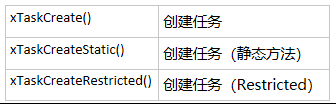 顾名思义,这些函数的作用是创建一个任务,创建的任务会进入就绪状态,如果没其他更高优先级的任务运行,则马上进入运行状态