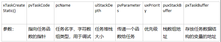 pvTaskCode:直接指向函数的本体的指针,可以把任务函数名字直接贴过来