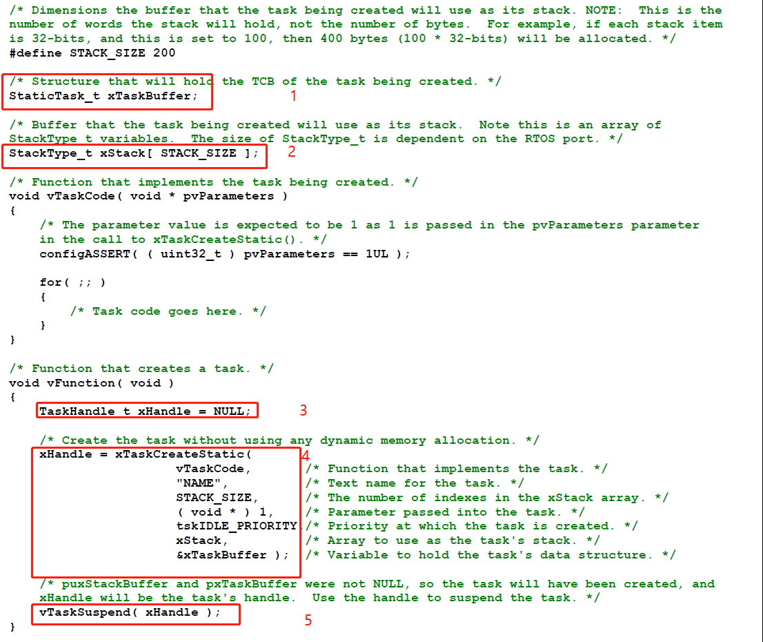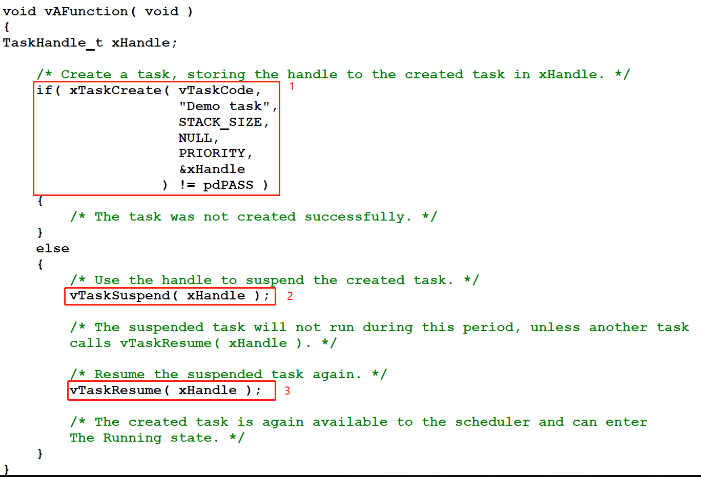 创建成功的话使用vTaskSuspend()把刚刚创建的任务转换为挂起状态(该任务将不会再得到执行)