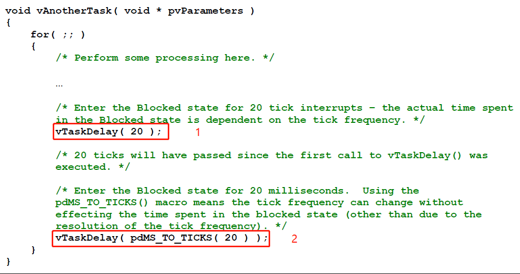 延时20ms。(pdMS_TOTICKS()可以把ms时间换成tick为单位)