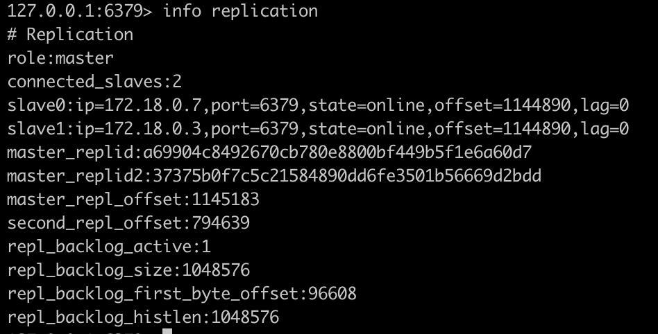 当容器重启成功后,我们再去新的master节点中使用info replication查看下。