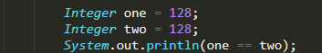 解答:Integer类型当正整数小于128时是在内存栈中创建值的,并将对象指向这个值,这样当比较两个栈引用时因为是同一地址引用两者则相等。当大于127时将会调用new Integer(),两个整数对象地址引用不相等了。这就是为什么当值为128时不相等,当值为100时相等了。