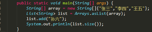 4.由数组转换的list,只能循环遍历,而不能看长度,增加元素,删除元素,这是为何?下图代码执行竟然出错!