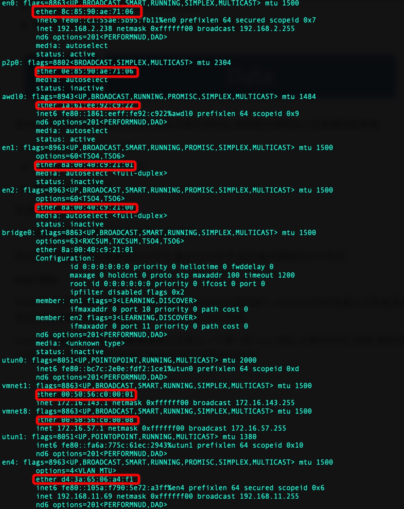mac 地址:每块网卡出厂时都被烧制上世界上一个惟一的MAC 地址,长度为48位2进制,通常由12位16进制数表示(前六位是厂商编号,后六位是流水线号)