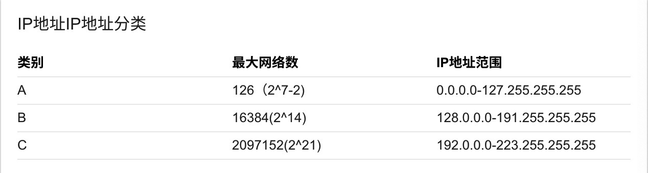IP 地址一般分为5类:A,B,C,D,E 类, D 和E 类为其他用途的.