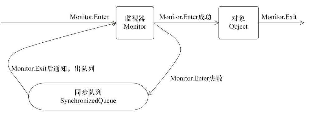 synchronized允许使用任何的一个对象作为同步的内容,因此任意一个对象都应该拥有自己的监视器(monitor),当这个对象由同步块或者这个对象的同步方法调用时,执行方法的线程必须先获取到该对象的监视器才能进入同步块或者同步方法,而没有获取到监视器(执行该方法)的线程将会被阻塞在同步块和同步方法的入口处,进入BLOCKED状态。