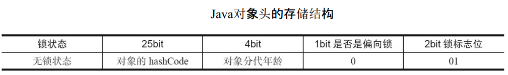 Java对象头里的Mark Word里默认存储对象的HashCode、分代年龄和锁标记位。32位JVM的Mark Word的默认存储结构如下图所示: