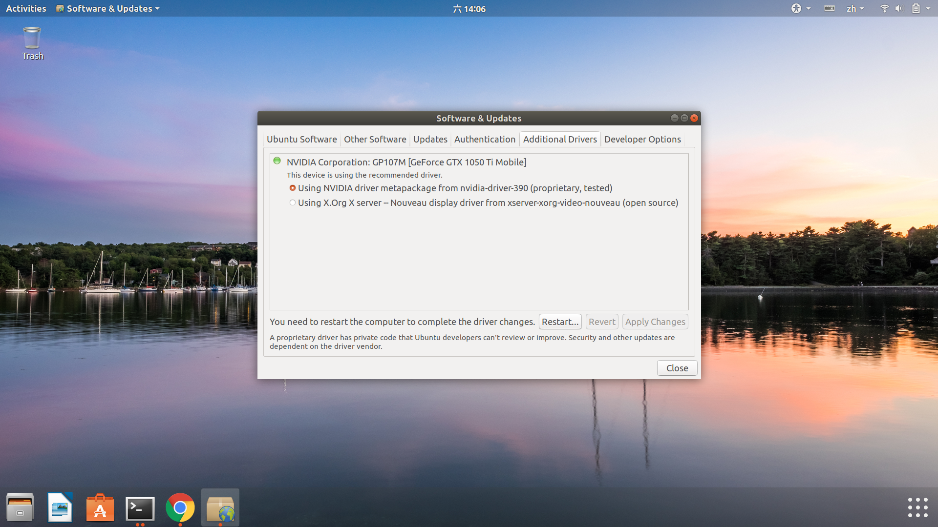 等待软件更新完成,你可以从更新详情中,大概发现,它似乎帮你更新了很多东西,而其中一些,似乎是针对wifi驱动,以及一些基础的组件。更新完成之后,你再点Apply changes,就会正常apply。重启后,login正常启动,并且显示恢复正常,wifi列表显示正常,Ubuntu可以正常重启,或关闭。