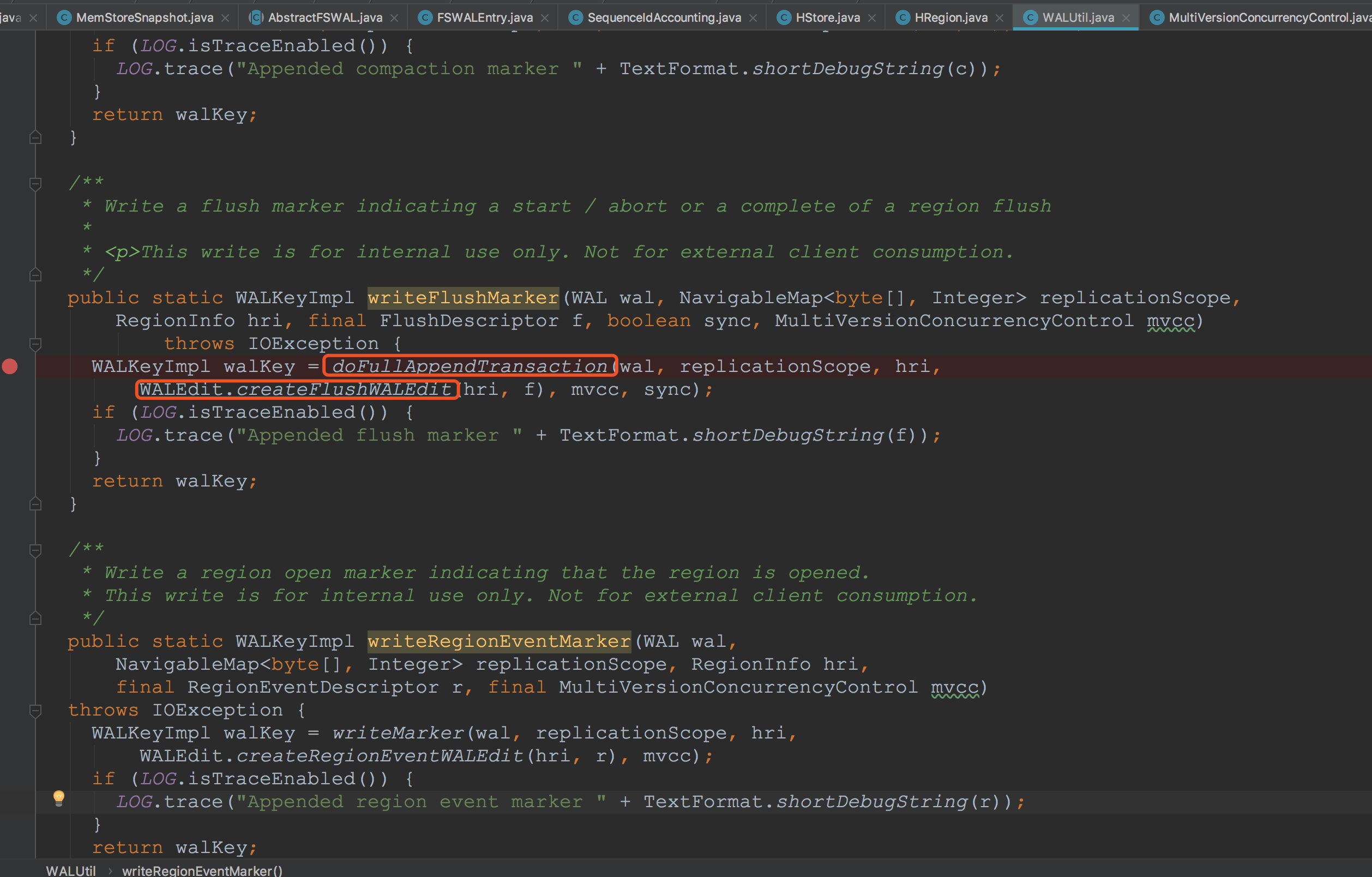 这里,我们简单看一下WALUtil.writeFlushMarker,并不做深入讲解,因为后面的内容还很多,详情让我们放到下一节。