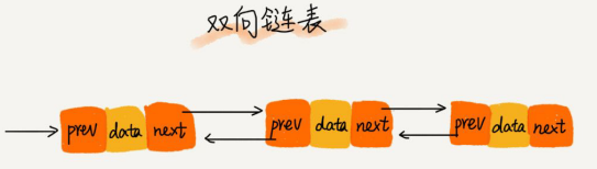 单向链表每个结点只知道自己下一个结点是谁,是一条单向的“链条”,而在双向链表里每个结点既知道下一个结点,还知道前一个结点,相比单链表,双向链表每个结点多了一个前驱指针(prev)指向前一个结点的地址,如下图所示: