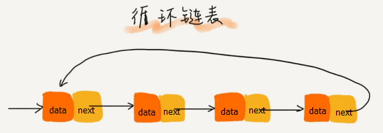 将一个单链表首尾相连就形成了一个环,这就是循环链表,循环链表里尾结点不在是null,而是指向头结点。当数据具有环形结构时候就可以使用循环链表。